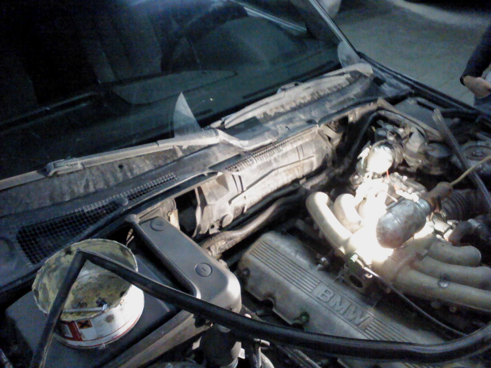 На машине была стандартная проблема-люфт трапеции дворников со стороны пассажира. Пассажирский дворник тер об капот. Решил, что надо срочно устранять, без дворников особо не поездишь, а люфт это первый симптом смерти трапеции.Покурив форумы решил делать сам по инструкции с e34.su Закупил два комплекта втулок стартера ВАЗ 2109 и необходимый инструмент (головку на 27, вороток к ней, резиновый молоток, треугольный надфиль, маленькое зубило), принялся за работу. Делал не спеша, в перерывах пока разбирал, смазал все замки и петли, обработал силиконовой смазкой все резиновые уплотнители, направляющие стекол, зачистил, обработал и подкрасил кромку крышки багажника (благо с машиной досталась баночка родной краски) и небольшой скольчик на крыле. Когда снял щиток, который закрывает моторчик печки и трапецию, обнаружил на нем очаги коррозии, зачистил всё, обработал и закрасил.Вытаскивать кожух и сам вентилятор отопления из моторного отсека с m50 отдельное удовольствие! :) Сначала кажется, что это не возможно:) Но вот заветная трапеция в руках! Трапецию видимо уже меняли, т.к. на ней была какая-то надпись кажется "КАРАСЬ" :)Заменил втулки только со стороны пассажира, т.к. на водительской люфт совсем незначительной, да и втулки от стартера на сторону водителя не совсем подходят без доработок. Обработал все узлы и механизмы трапеции смазкой и собрал в обратной последовательности (сборка не менее увлекательна чем разбор) После ремонта люфта нет совсем! Напоследок подкрасил капот с внутренней стороны в том месте где он протирался дворником. Итого шесть часов проведенных наедине с BMW! :)